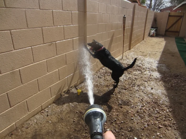 Sophie arrived for leash aggression toward other dogs. What we discovered was that she needed some solid social skills, leadership and confidence to prepare for adoption. First, we had to figure out how to engage her. As we cleaned the play yard one day, Dianne turned on the hose and discovered a girl who was ready to play! Play infused with commands is what reached Sophie! We immersed her in the pack slowly and taught her how to be a balanced dog while she waited patiently for months to be adopted. Congratulations, Sophie and Sue!